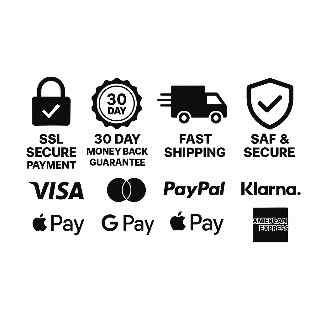 Your payment is 100% safe and secure. We offer fast delivery, SSL-encrypted payment, and a money-back guarantee.